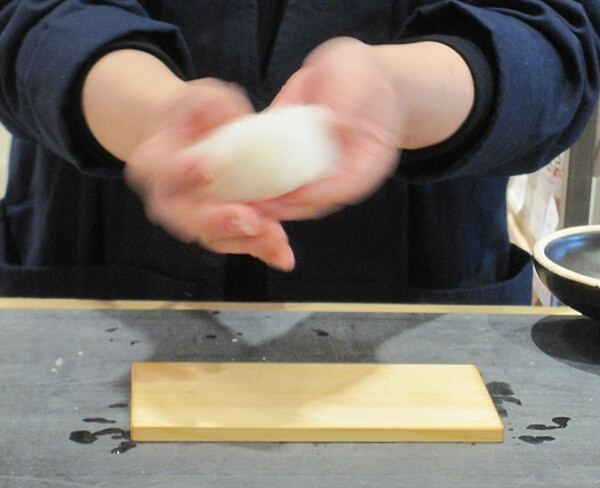 軽くて使いやすいヒノキ製の「おにぎり型」。