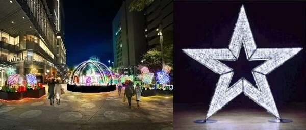 広場中央には、希望を象徴する大きな星型のイルミネーションオブジェ。