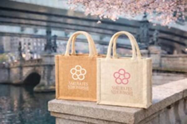 日本橋の街中で配布されるバッグの中には、イベントリーフレットクーポンなど、SAKURA FES NIHONBASHI 2026を一層楽しめるグッズが盛りだくさん。